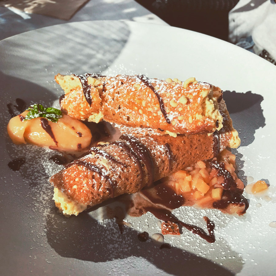 /Cannoli filled with chestnut mousse and quince ice cream