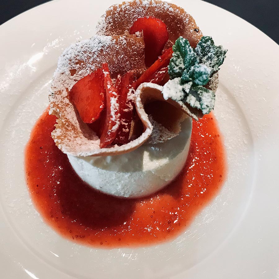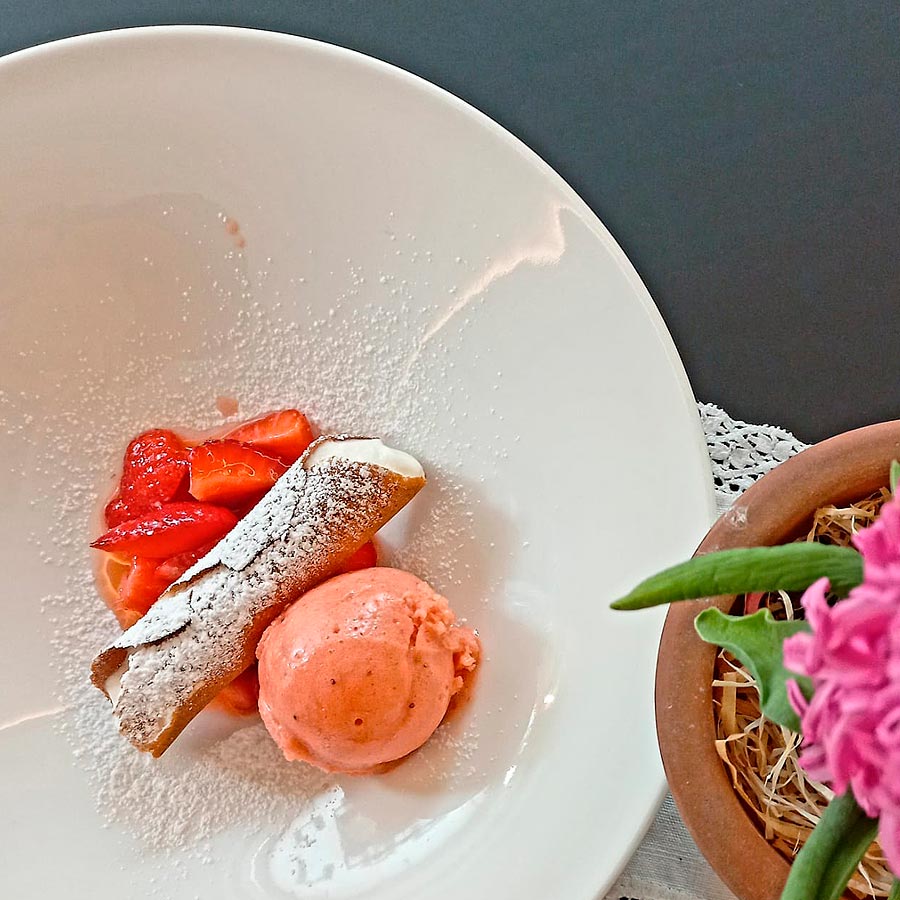 /Cannolo with yogurt cream, strawberry ice cream and strawberries
